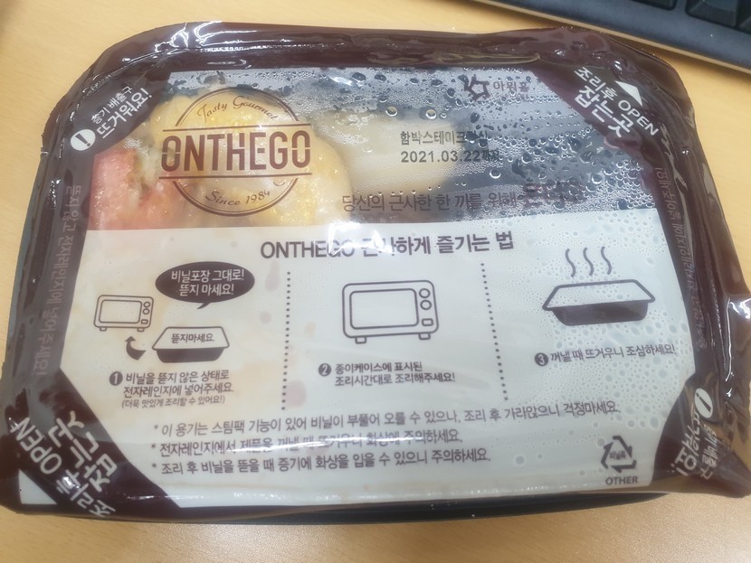 20.08.04 436 읽음 온더고 도시락 시식후기 ymh0310 구독하기 7 10 콘텐츠의 수익 16 온더고 도시락, 온라인에서 특가로 12개에 39,900원에 구입했구요.비닐 포장지 제거하지 않고 통째로 4ㅡ5분 전자레인지에 돌리면 됩니다. 사진에는 음식물이 한쪽으로 쏠렸는데 맛도 괜찮고, 포만감도 꽤 있어요. 한 팩에 4ㅡ500kcal 하는것 같습니다. 회사 도시락으로 먹기도 괜찮고, 집에서 밥하기 귀찮을 때 먹기도 괜찮아요~ 추천! 10 0 / 300 입력
