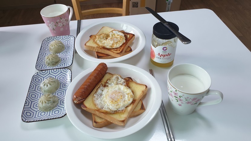 주말 집에서 즐긴 브런치🍞🍳🧈🥛🥟