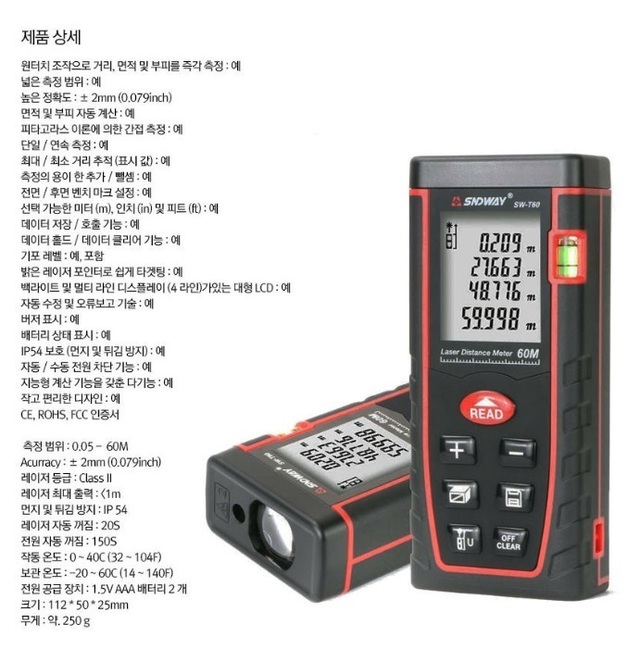 레이저 거리 측정기(SW-T60) 개봉 및 간단 사용기