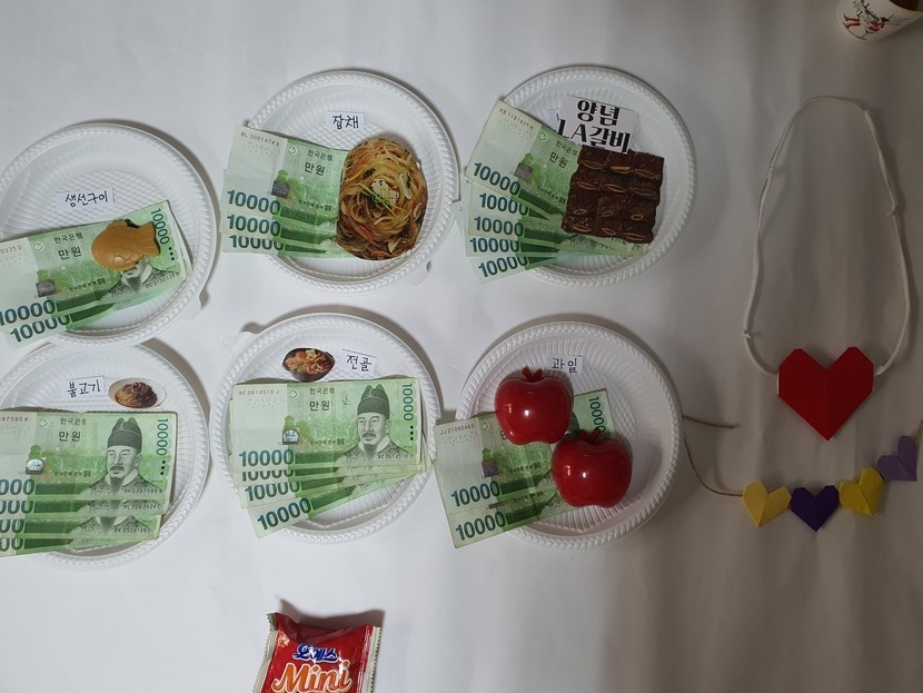 음식 사진 나름 집에서 뒤져서 오려 붙이고 돈 올리고