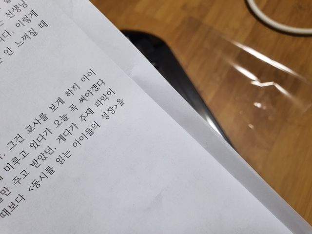 그리고 종이 안흔들리게 왼쪽손으로 잡고 오른손으로
