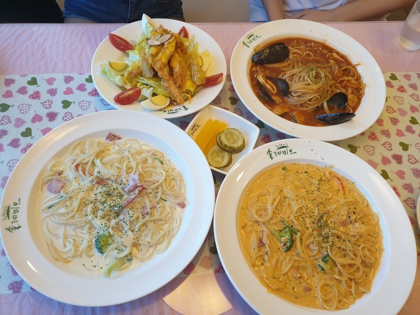 20.08.23 148 읽음 오랜만에 친구들과 먹은 까르보나라~ 오늘도하루 구독하기 7 6 콘텐츠의 수익 9 코로나19가 더 확산되기 전에 친구들과 시간을 정해 맛있게 먹었던 파스타들~ 순서대로 케이준 샐러드, 해물토마토파스타(?), 까르보나라, 매운 까르보나라예요! 피망은 그닥 좋아하는 편은 아니었는데 그래도 꾹 먹었다는~ㅋㅋ나가서 먹는 것도 좋지만 요즘같은 때에는 집에서 파스타 한 번 해먹어도 좋지 않을까요~?? 덥긴 하겠지만 만들고 난 후의 첫입은 무엇보다도 값진 것! 오늘도 맛점하세요!😁😁 6 0 / 300 입력