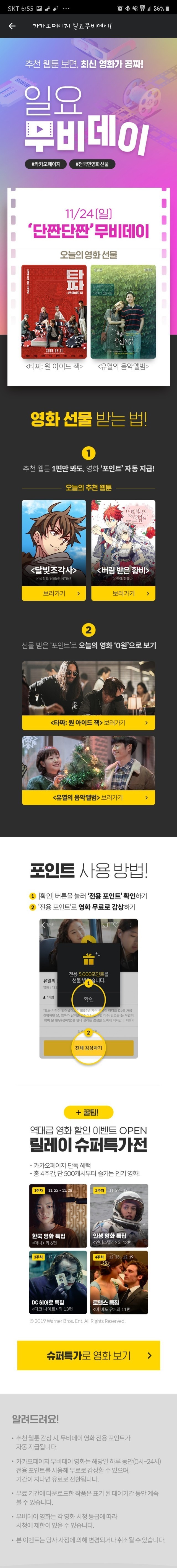 카카오페이지에서 단짠단짠 무비데이 무료 영화 쏜데용 ~