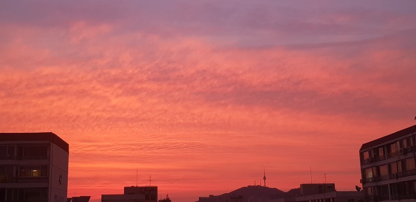 20.09.06 168 읽음 이 하늘은 무슨 색이라고 할까요? jsnlee89 구독하기 12 8 콘텐츠의 수익 12 가끔 이렇게 분홍빛 도는 석양을 봅니다. 땅만 보고 걷다가 하늘을 향해 고개를 들게 해주는 여유를 주는 하늘입니다. 8 0 / 300 입력