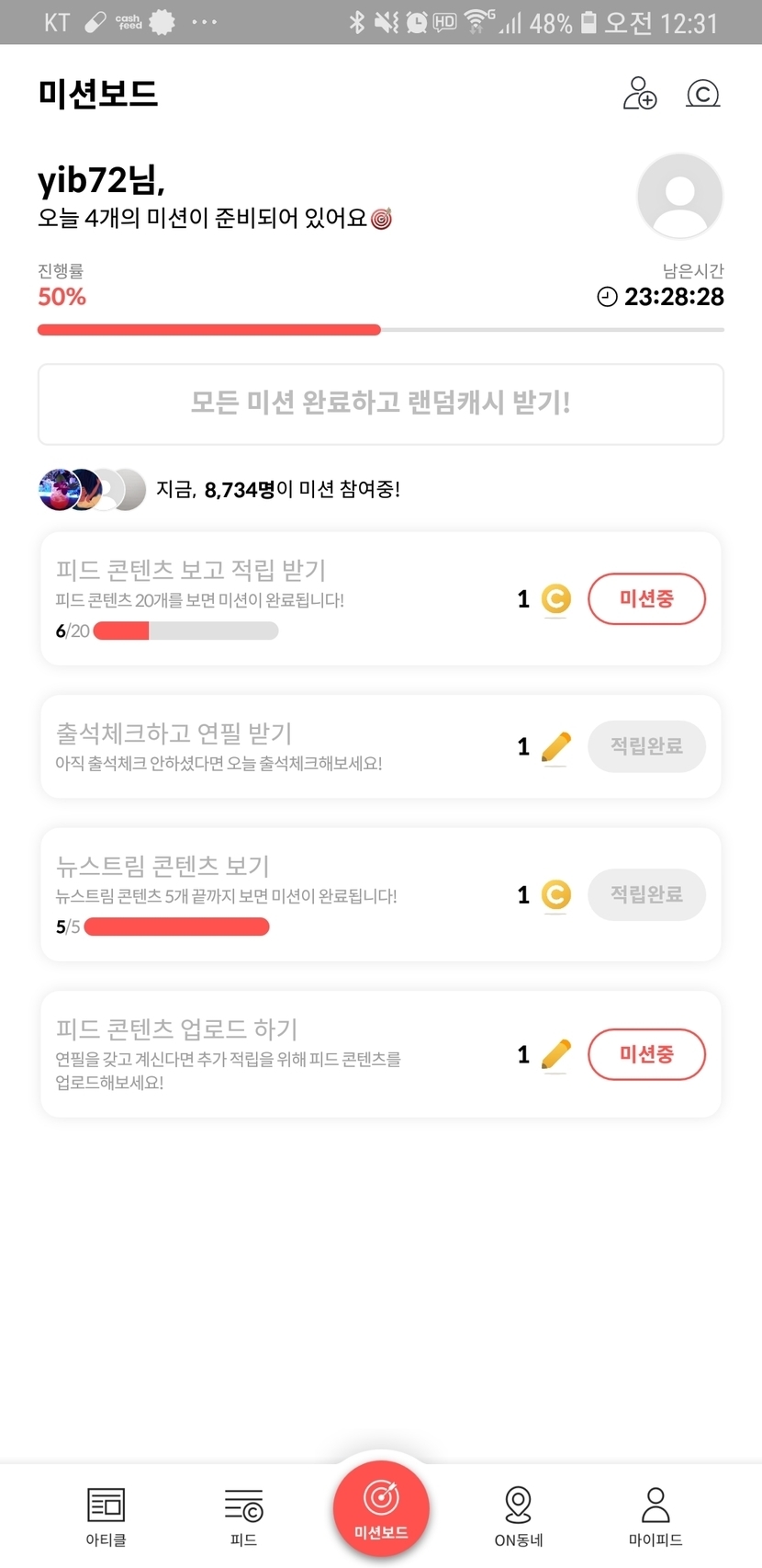 미션완료후 캐시 많이 받으면 좋겠다