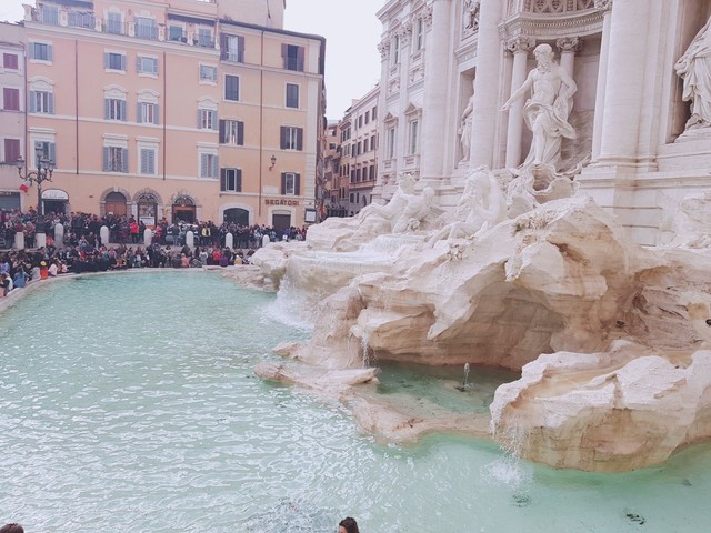유명한 트레비분수! 동전을 등지고 던져서 넣으면 다시 로마를 방문할 수 있다고 하는 속신이 있습니다~ 생각보다 규모는 작았는데 인파는 어마어마합니다!