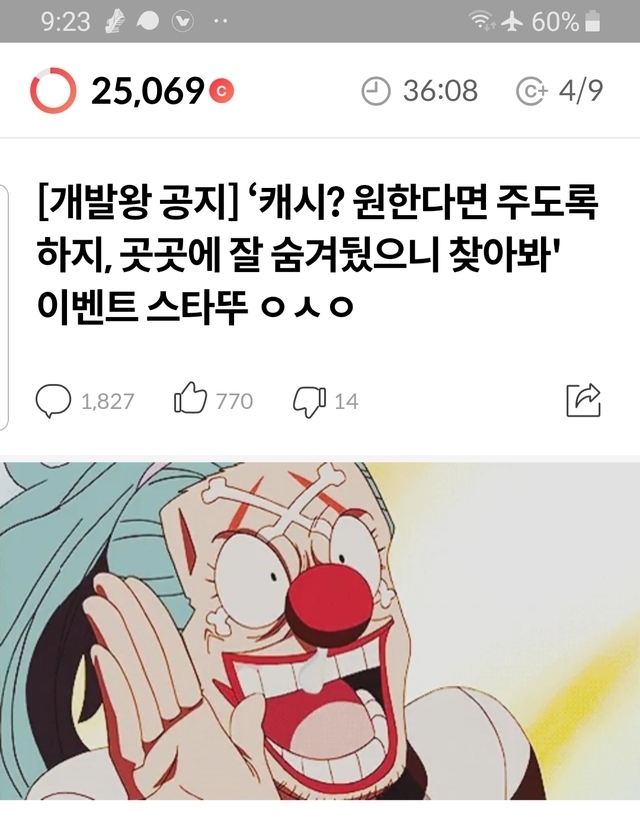 19.11.25 56 읽음 너무신나요 니발내발 구독하기 2 3 콘텐츠의 수익 13 캐시? 원한다면 주도록 하지이글보고 빵터졌어요너무 신납니다 저만 이러나요?30분뒤에 마지막보물 같이 찾아요모두들 화이팅!! 3 0 / 300 입력