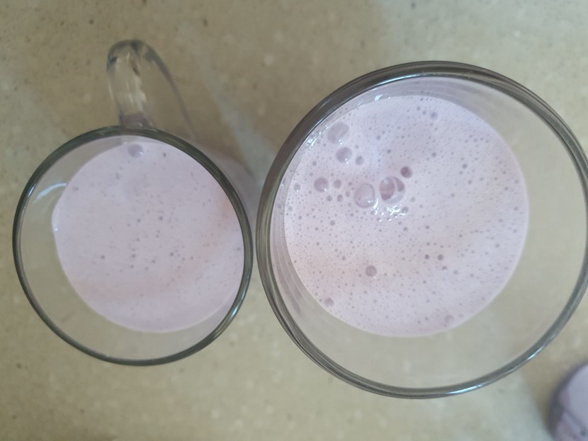 블루베리에 우유 꿀 넣어 갈았어요.