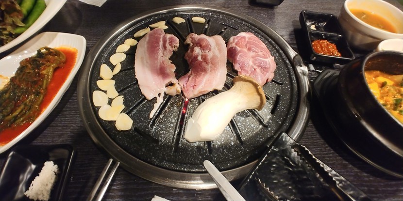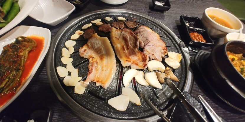어제 한돈 한상 ( 삼겹살, 목살)으로 체력 비축하고
