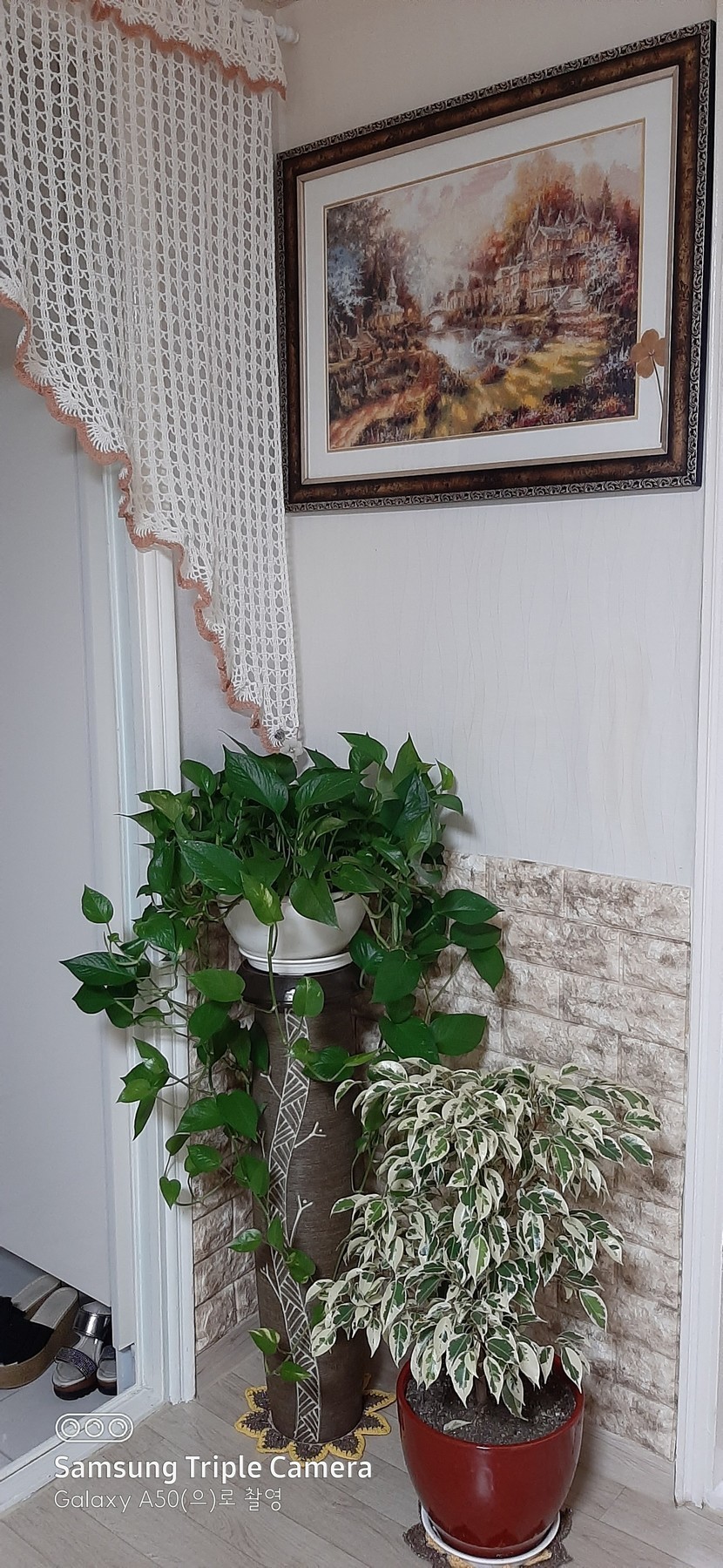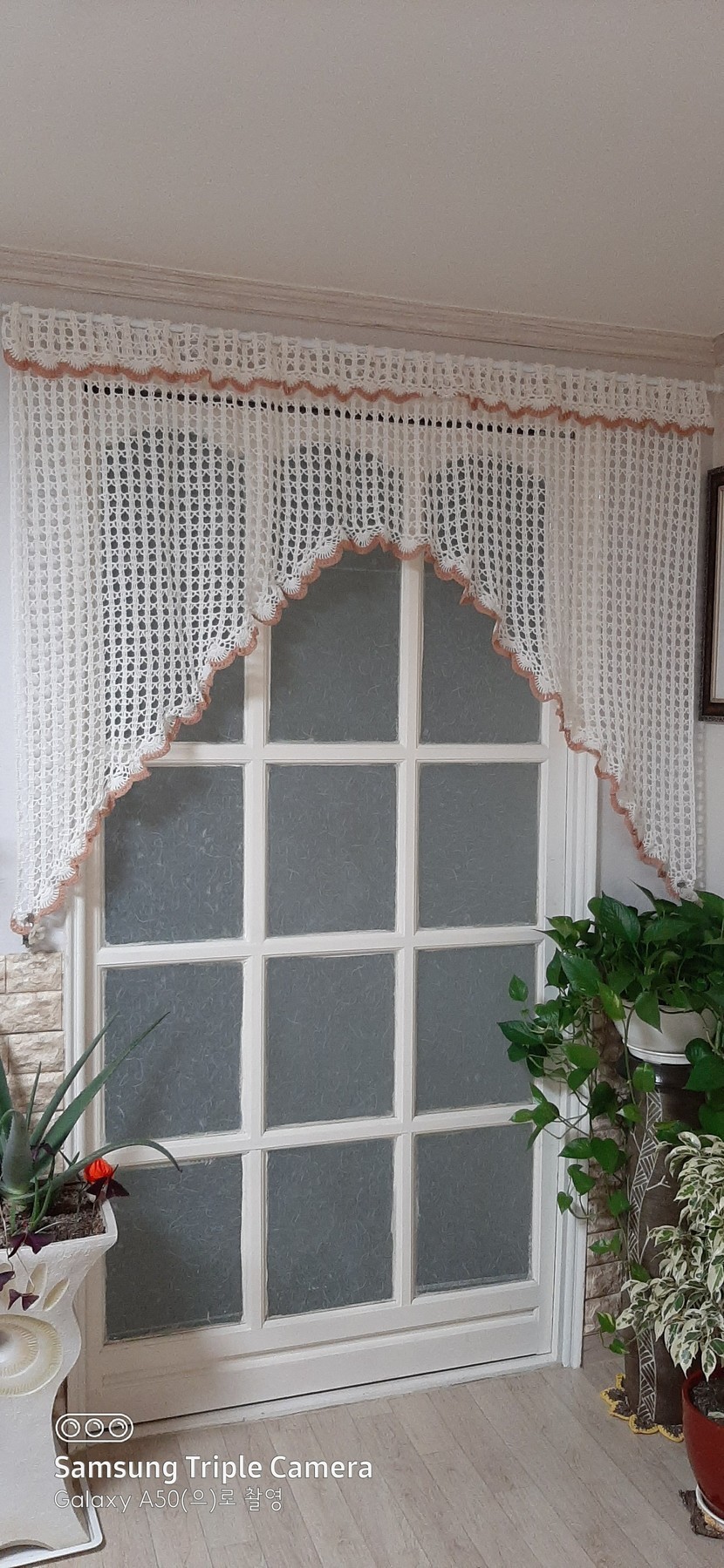 현관문 앞 아치형 커텐