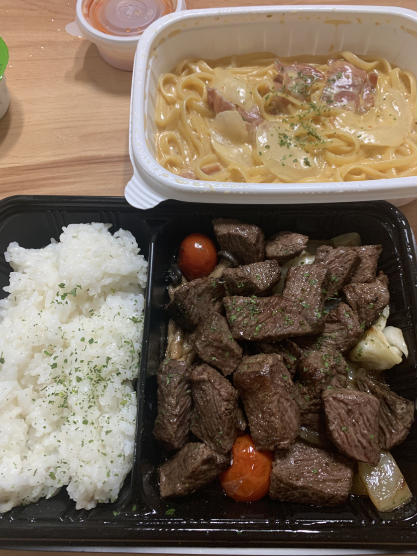 배달로 먹은 큐브스테이크 & 파스타