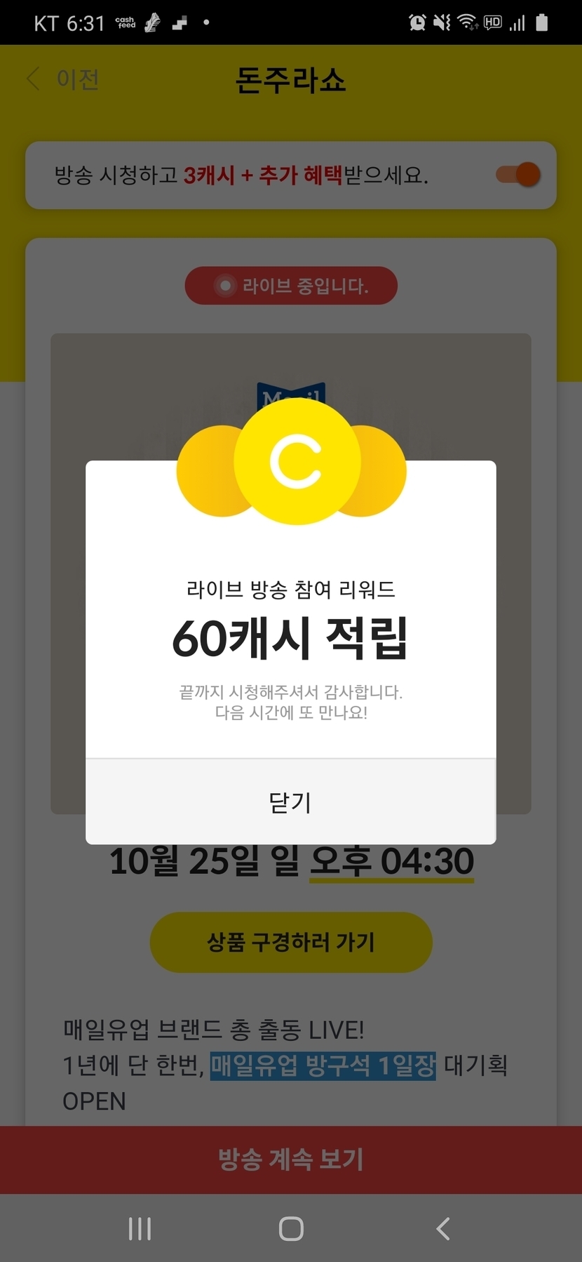 20.10.25 179 읽음 돈주라쇼 적립 💯💯💯 Mrs. You 구독하기 32 34 콘텐츠의 수익 17 라방 두시간 꼬박 틀어놓고 60원 받았어요 🤣🤣🤣켜 놓고 딴짓하긴 했지만 두시간은 너무 기네요😪😪😪어쨌든 60원 벌어서 기분은 좋네요 🥰🥰🥰 34 0 / 300 입력