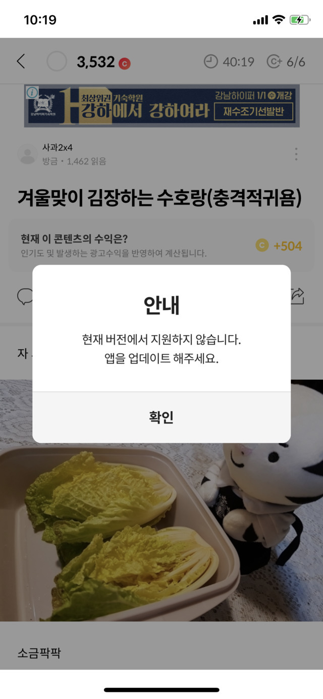 19.12.02 60 읽음 최신버전인데 저만그런가요,,, 요가빠이야 구독하기 3 1 콘텐츠의 수익 15 앱스토어 들어가봐도 업데이트 안뜨구여. 설정에서도 지금 최신버전 사용중이라고 나오는데 왜자꾸 이러죠ㅜㅜ 1 0 / 300 입력