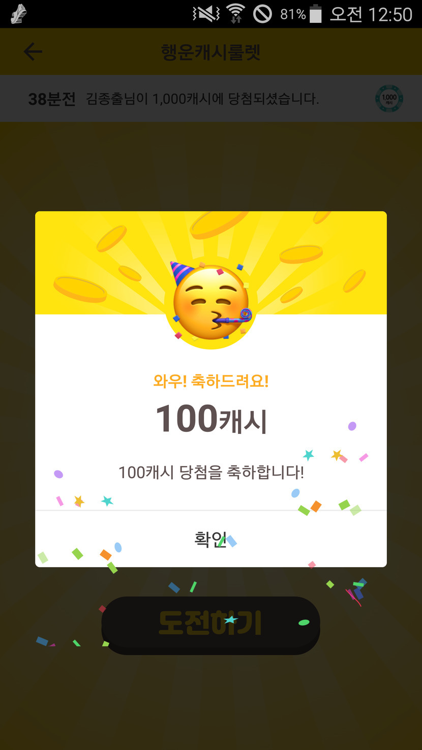 처음으로 100캐시 받아서 뛸듯이 기쁩니다.