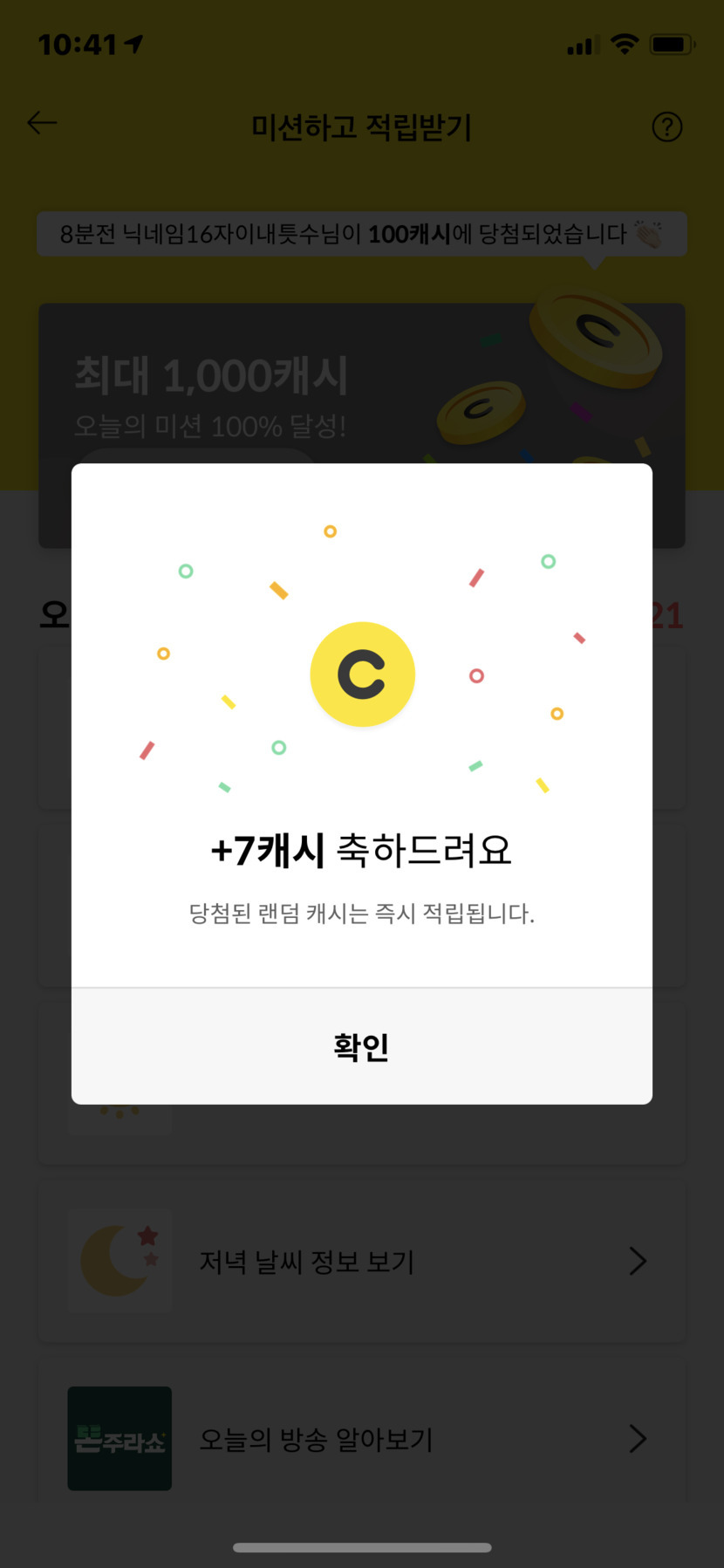 7캐시 나왔습니다 ㅎㅎ
