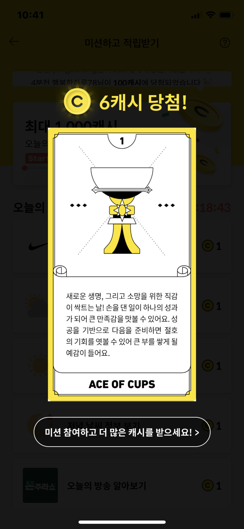 타로 6캐시 당첨!