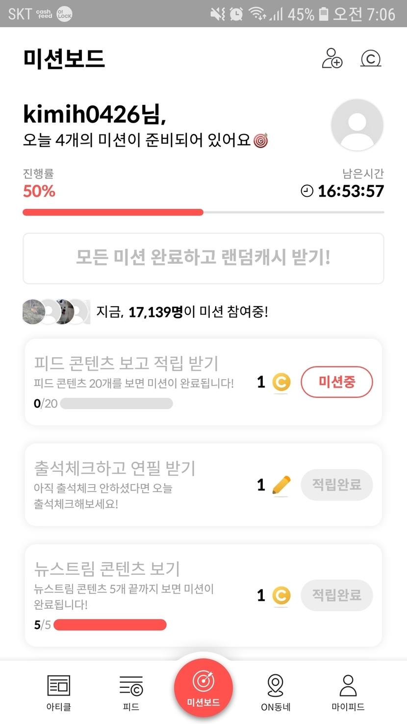 미션중~ 요즘 랜덤캐시 너무 짜요;;