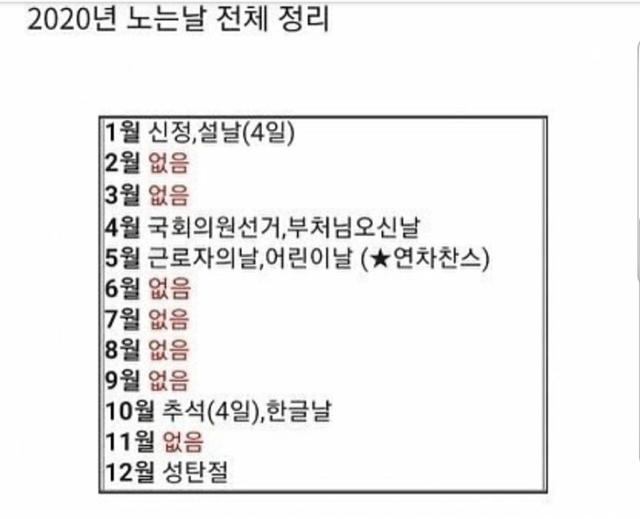 역대급 쉬는 날 최소라네요ㅠㅠ
