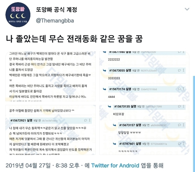 나 졸았는데 무슨 전래동화 같은 꿈을 꿈