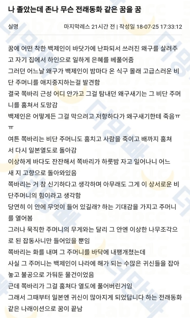 나 졸았는데 무슨 전래동화 같은 꿈을 꿈