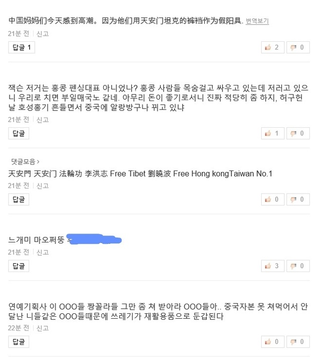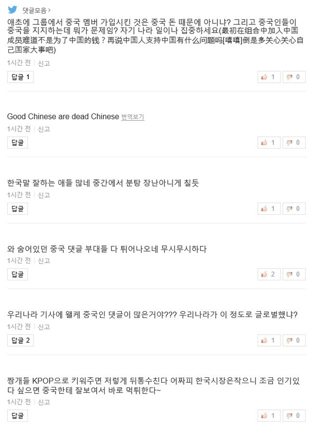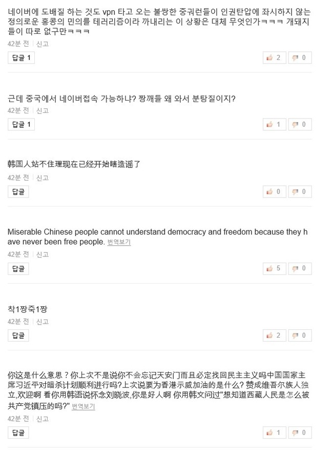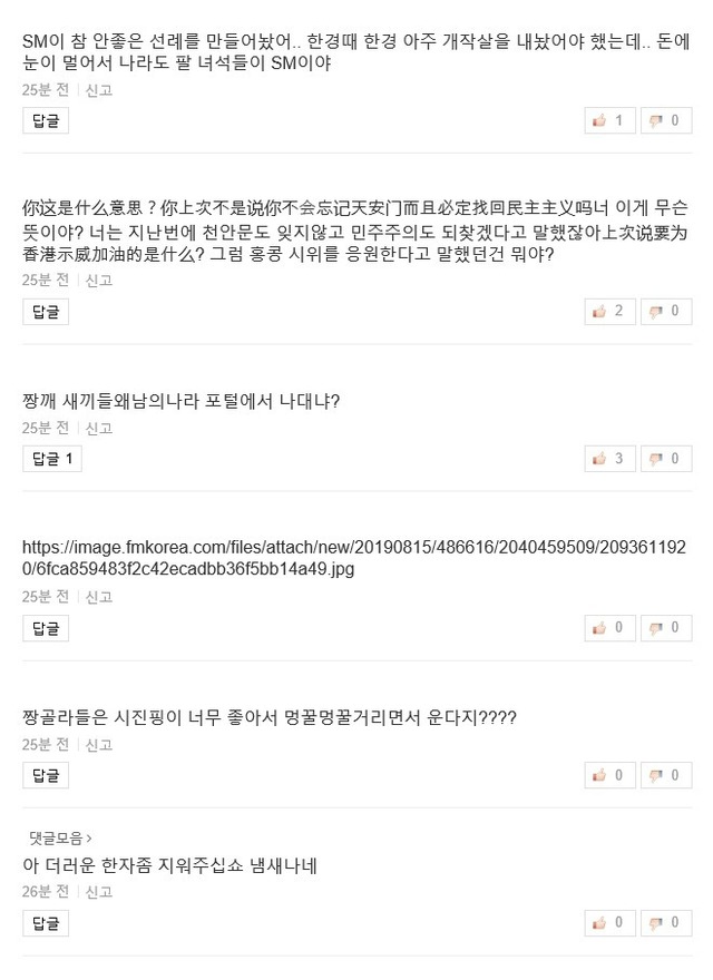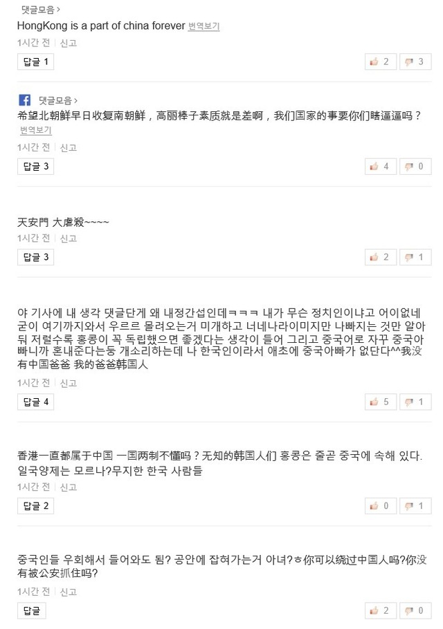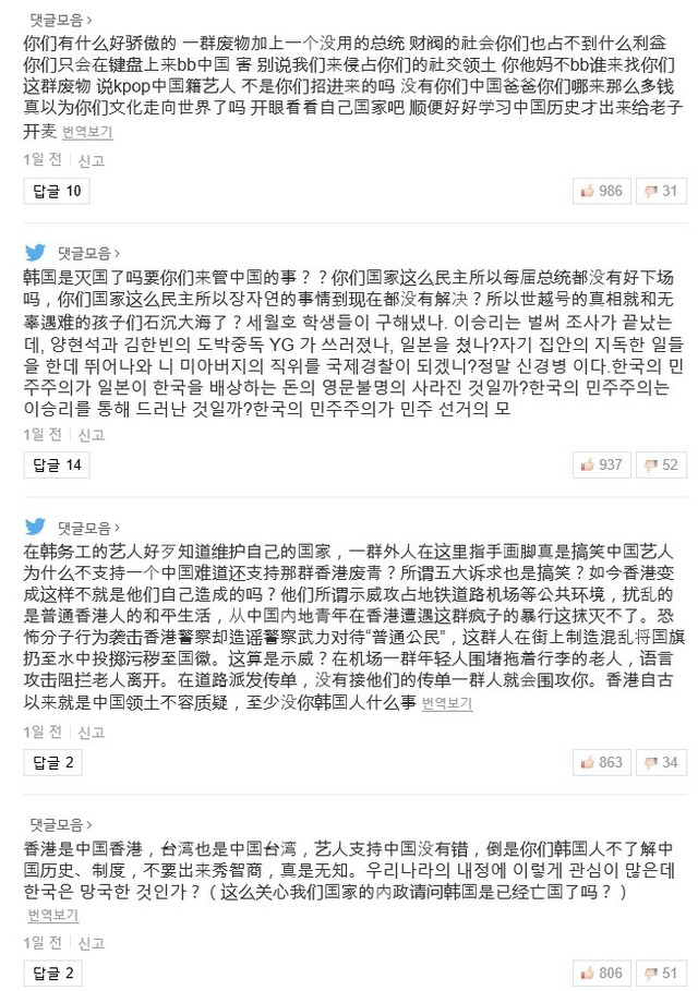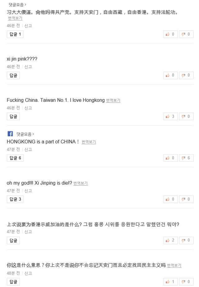홍콩 부끄럽다는 중화권 아이돌 기사 댓글 상태 jpg