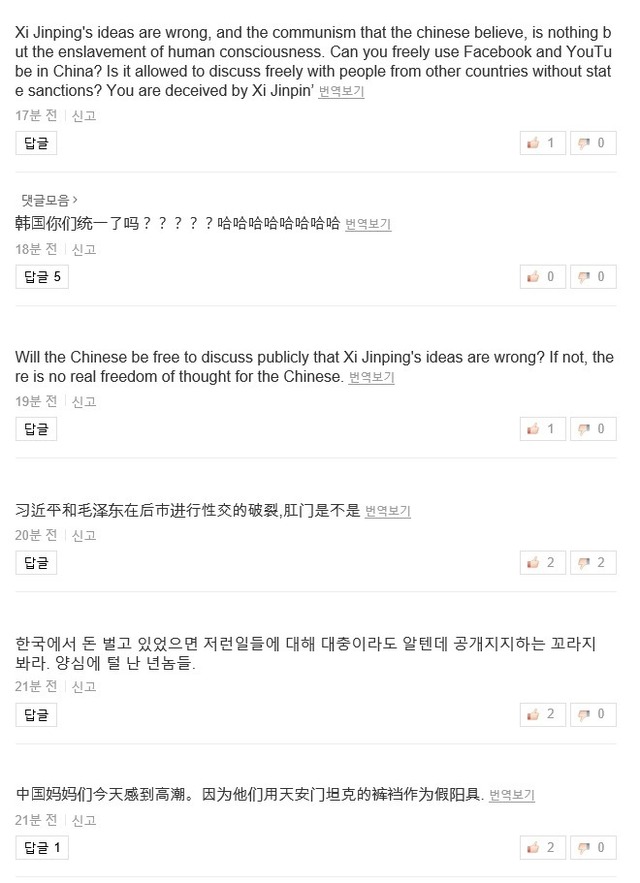 중국어로 번역해서 욕쓰고 있음 ㅋㅋㅋ