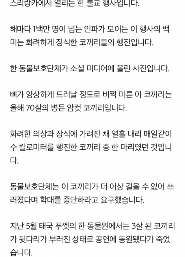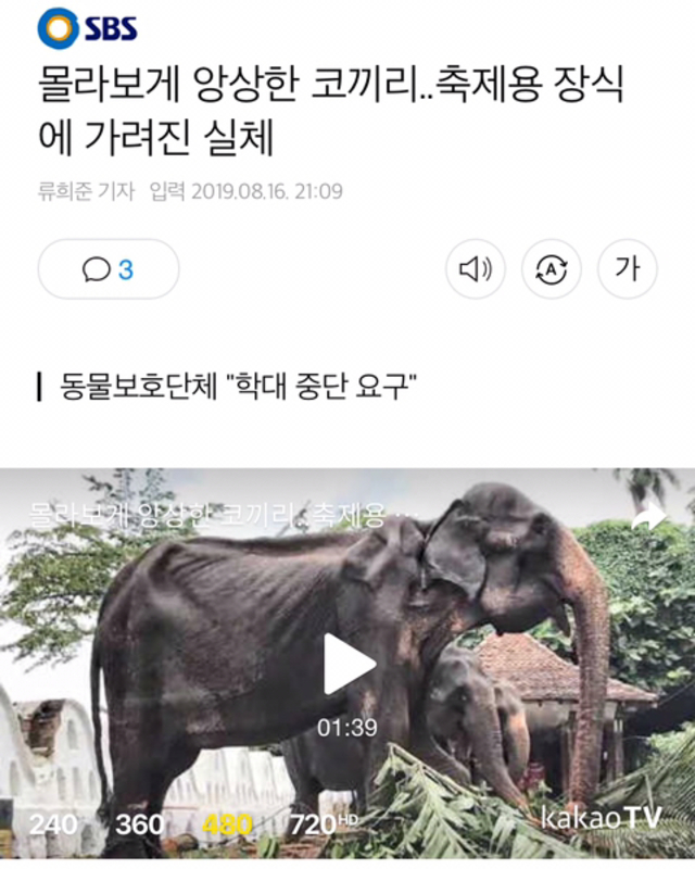 몰라보게 앙상한 코끼리..축제용 장식에 가려진 실체