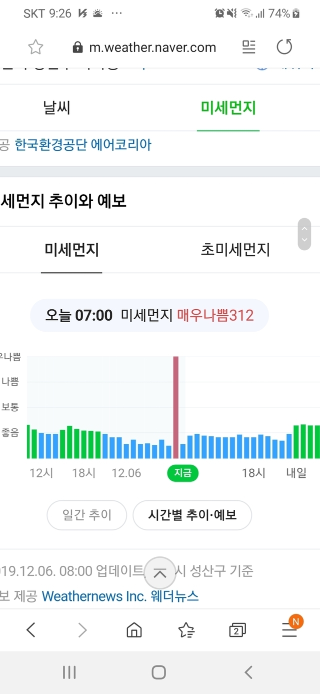 19.12.06 46 읽음 미세먼지 거참 gksmfdo99 구독하기 1 1 콘텐츠의 수익 18 8시 넘어서 매우 나쁨인걸 보고 출근준비9시 넘어서 출근 하기전 다시 보니 매우 좋음 300까지 치솟다가 갑자기 매우 좋음 이거 맞는 걸까요 여긴 창원이예요 근데 옆동네는 계속 좋음 ㅡㅡ 1 0 / 300 입력