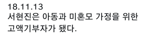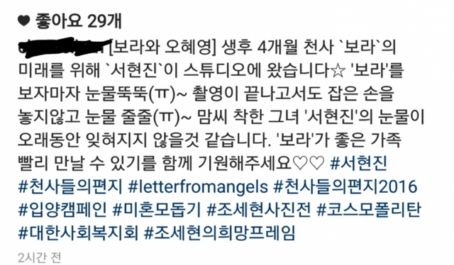 2년이 넘게 미혼모&입양아를 위해 꾸준히 기부활동을 한 결과