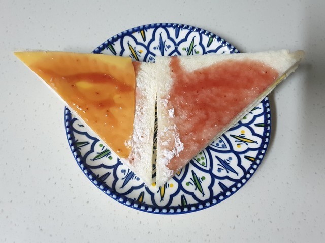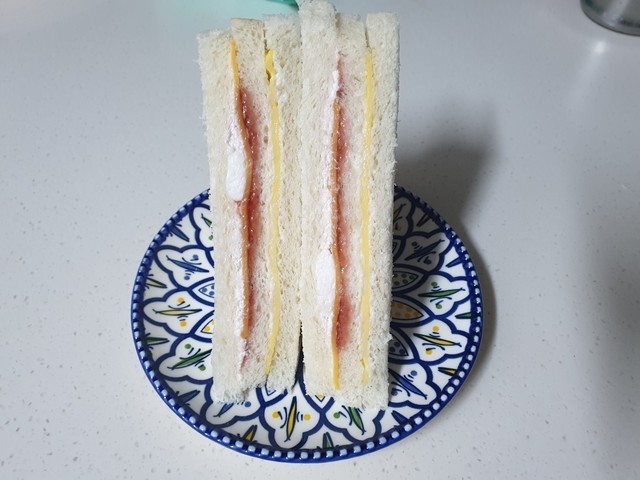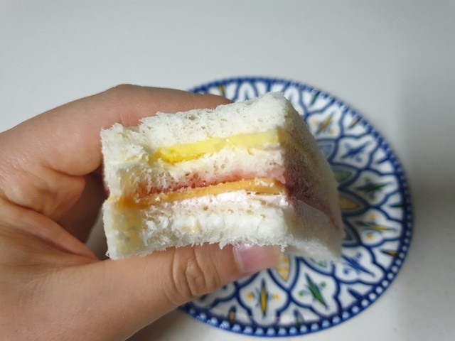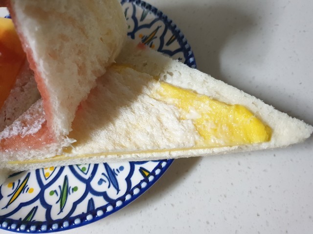 업그레이드된 딸기 샌드위치는 재질이 플라스틱으로 바뀌고 식빵이 분홍 스타일로 바뀌었다는 점.. 그게 전부였는데 사람들이 많이 찾는 딸기 샌드위치답게 맛은 보장한다는 점... 제가 먹어본 평으로는 일단 존맛탱이에요.베리굿이당 샌드위치는 얼핏 보면 홍루이젠과 닮은 듯한 복제본이랄까.. 비쥬얼이 깔끔하니 첫 인상은 괜찮더라구요.베리굿이당 샌드위치에는 크게 딸기잼, 생크림, 체다치즈, 계란지단 이렇게 들어갔구요. 맛을 보니 제 입맛에는 존맛탱이 와닿았어요. 과하지 않은 적당한 달달함과 체다치즈 + 계란지단의 담백함 및 느끼함을 잡아주어 맛있지 않았나 싶었던.. 전적으로 맛있어서 좋았어요. 다음엔 딸기 샌드위치도 겟해서 먹어봐야겠네요.