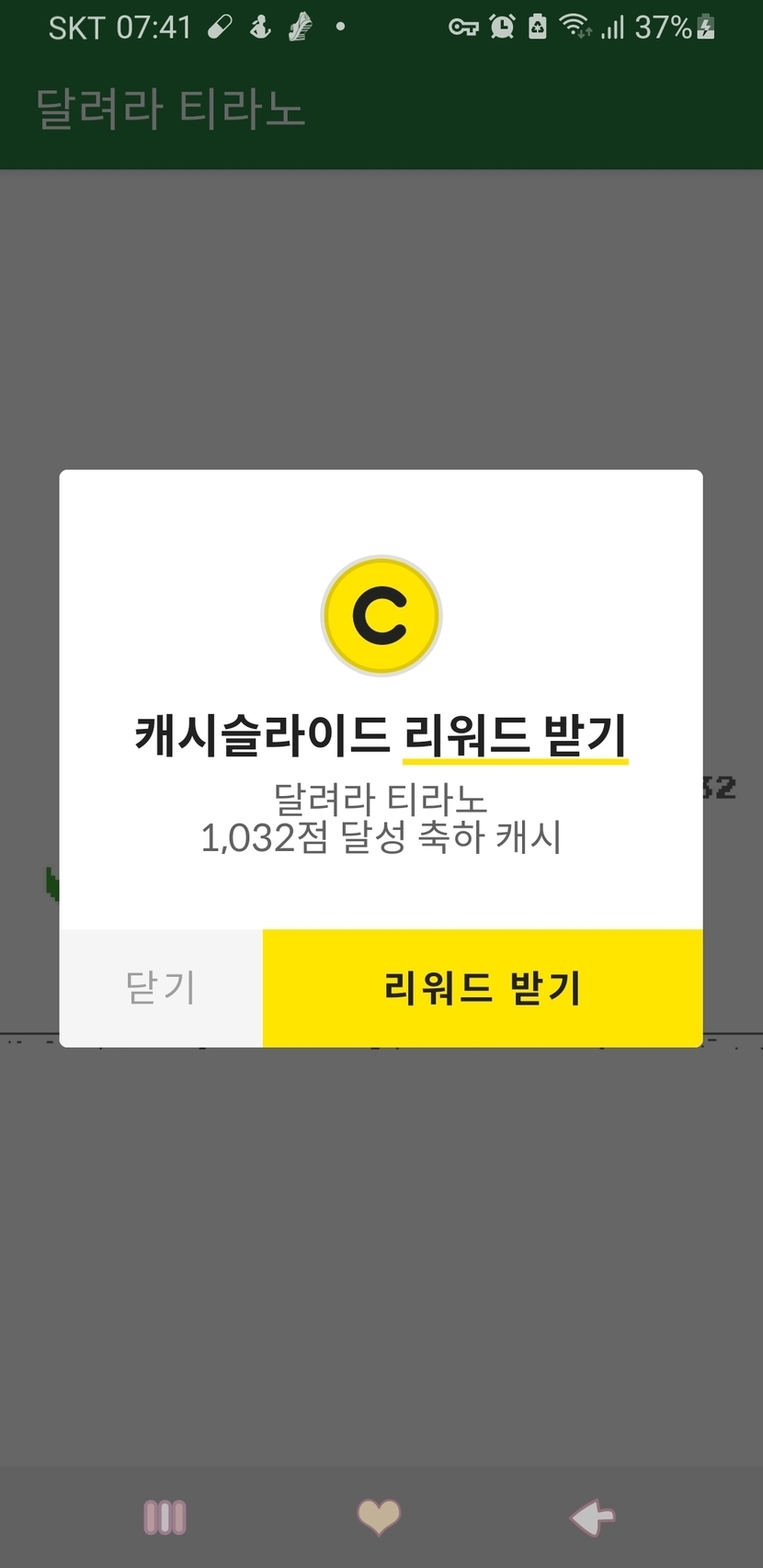 20.12.24 227 읽음 티라노 인증샷(미션업로드😉☺) 행복은내스스로가😉추천&답방 구독하기 114 108 콘텐츠의 수익 43 두번째 티라노 게임 인증샷올려요항상 새한테 맞아서 죽었는데😫 오늘은 눈을 부릅뜨고 새를 응시했어요오늘하루도 홧팅하세요 ☺😉 108 0 / 300 입력