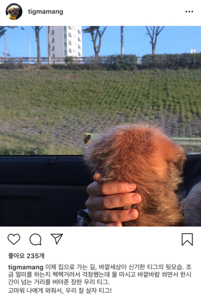 이주영배우가 처음 집에 데려오던 날 난생 처음보는 바깥을 바라보는 티그의 뒷통수ㅠ 꼬맹이 그 자체애기였는데요공놀이쯤은 와.일.드.ㅋ 하게 즐길줄 아는 멋쟁이가 되었읍니다.티그 : 던져.