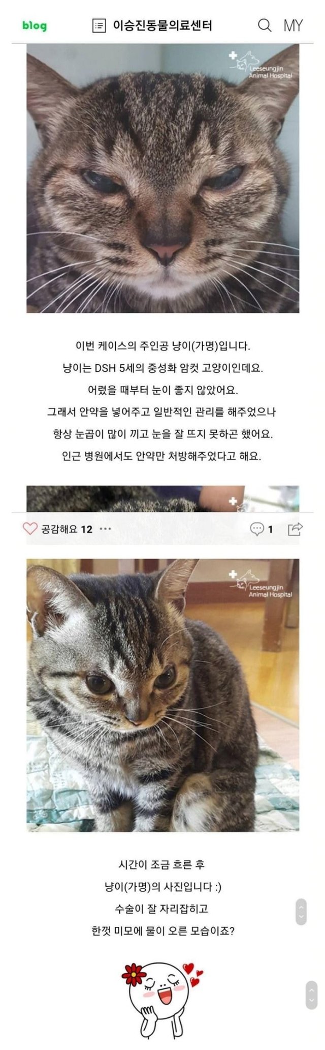 19.08.21 195 읽음 고양이 쌍수 후기.jpg 초보이용자 구독하기 0 2 콘텐츠의 수익 0 에구 수술하기 전에 눈 상태 봐ㅠㅠㅠㅠㅠㅠㅠㅠㅠㅠㅠㅠㅠㅠㅠㅠ 딱 봐도 안 좋아 보이는데 쌍수하니까 귀여워지고 눈도 훨씬 좋아짐ㅠㅠㅠㅠㅠㅠㅠ 2 0 / 300 입력