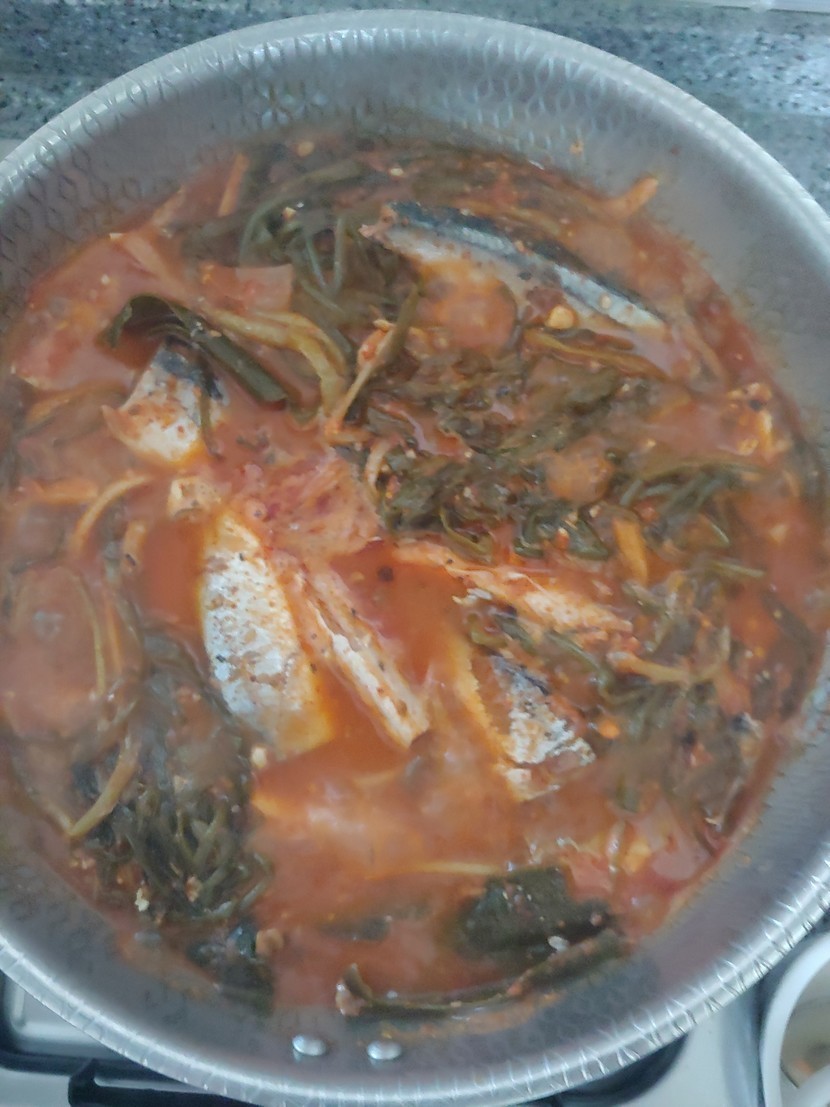 파김치 꽁치찌게는 2년 묵힌파김치와 국물넣고 쌀드물약간에 꽁치2캔 넣고 새우젓1스푼,약젓1스푼,고추가루2스푼,간마늘 1스푼,맛술2스푼,다시마2조각,생강가루약간 넣어 뚜껑넣어 40분간 쌘불에 끓여주면 둘이 죽어도 모를 파김치 꽁치찌게완성