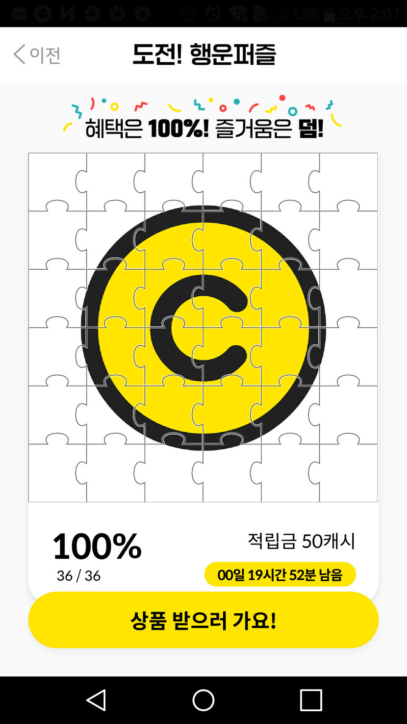 50캐시 퍼즐 성공했습니다.