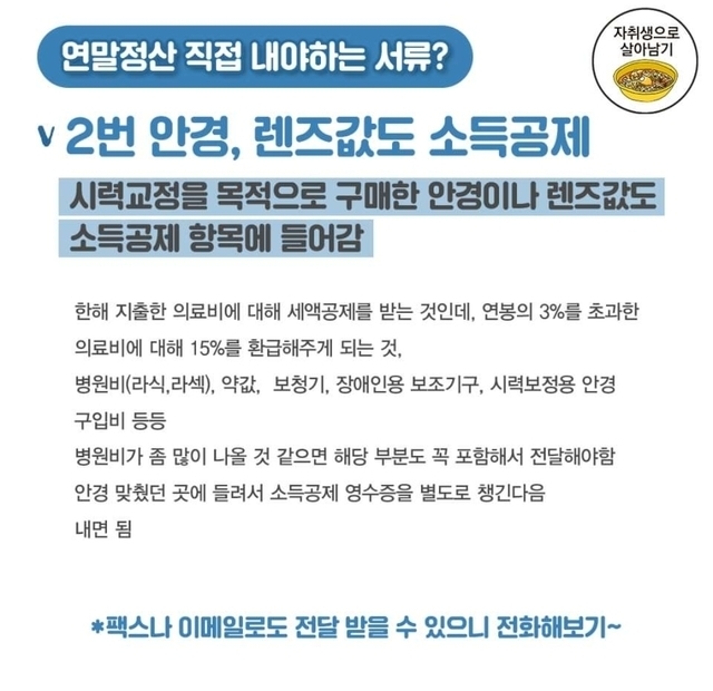 19.12.12 212 읽음 (13월 보너스) 연말정산 TIP 모아보기~~ arzzar 구독하기 7 23 콘텐츠의 수익 53 연말정산!혹시 렌즈도 연말정산 포함되는걸 아셨나요~?함께 연말정산 꿀팁들 살펴보고 13월의 보너스 받자구요~! 23 0 / 300 입력