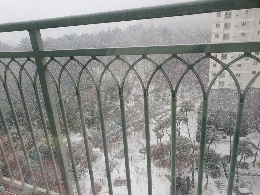 아침에보니 다행히 눈이 생각보단 많이 내리지않았고 녹고 있어서
