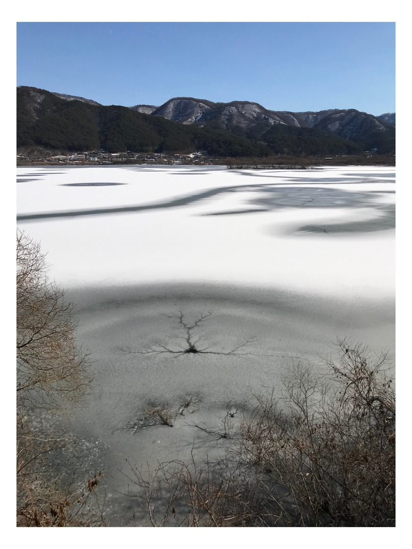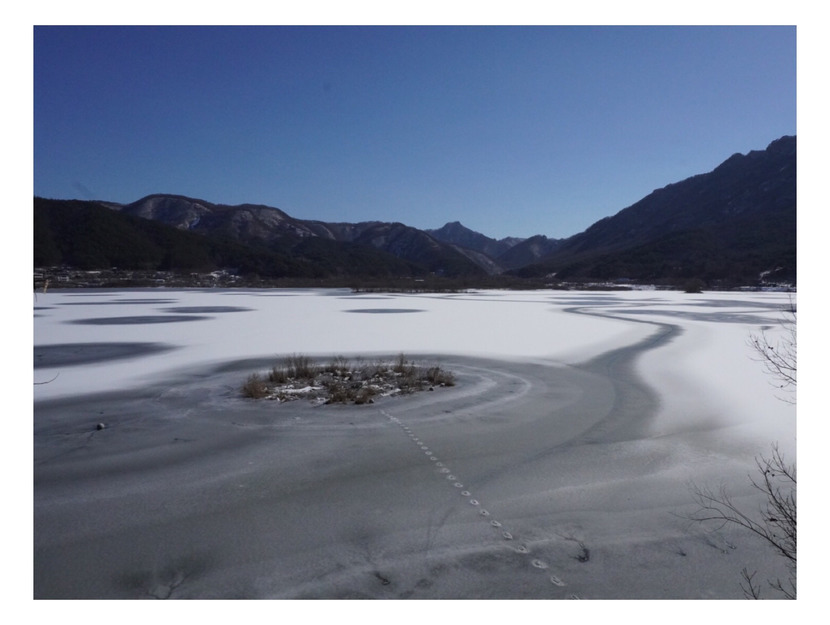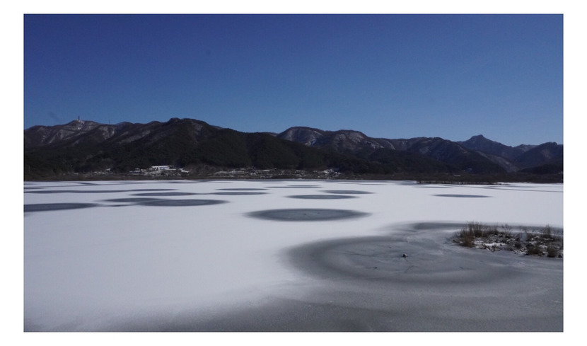 호수에 얼음이 녹고 있어요