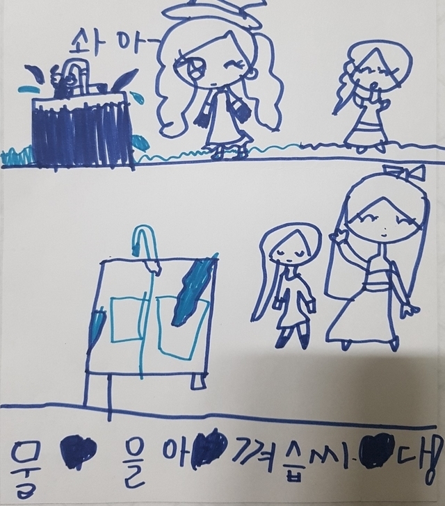 19.12.12 220 읽음 6살 물 절약 포스터ㅋ 다~가지자 구독하기 7 8 콘텐츠의 수익 27 유치원 숙제(?)로 절약 포스터 그리기가 있었네요우리 딸은 무엇을 어떻게 절약 하려나 궁금했어요엄마가 설거지 하면서 물을 많이 써서 넘치고 있대요그램버 수돗물 잠그라고 하고 잘해서 칭찬한대요물을 아껴 습씨다!포스터 완성이요~글자 틀린건 애교로 봐주세요ㅋㅋ 8 0 / 300 입력