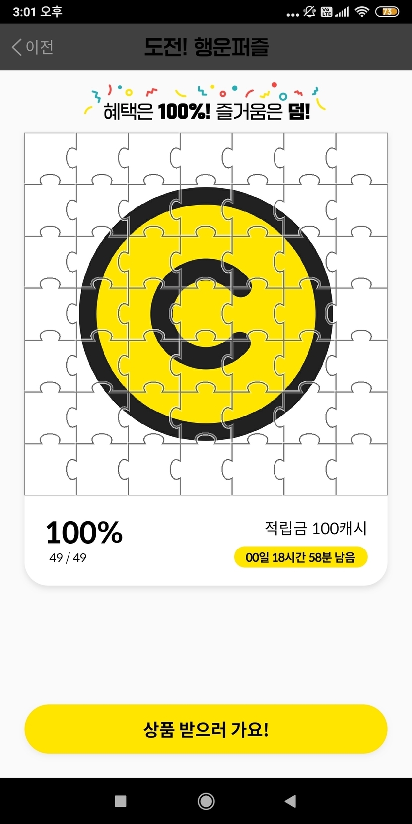 100캐시 퍼즐 오늘은 성공했어요