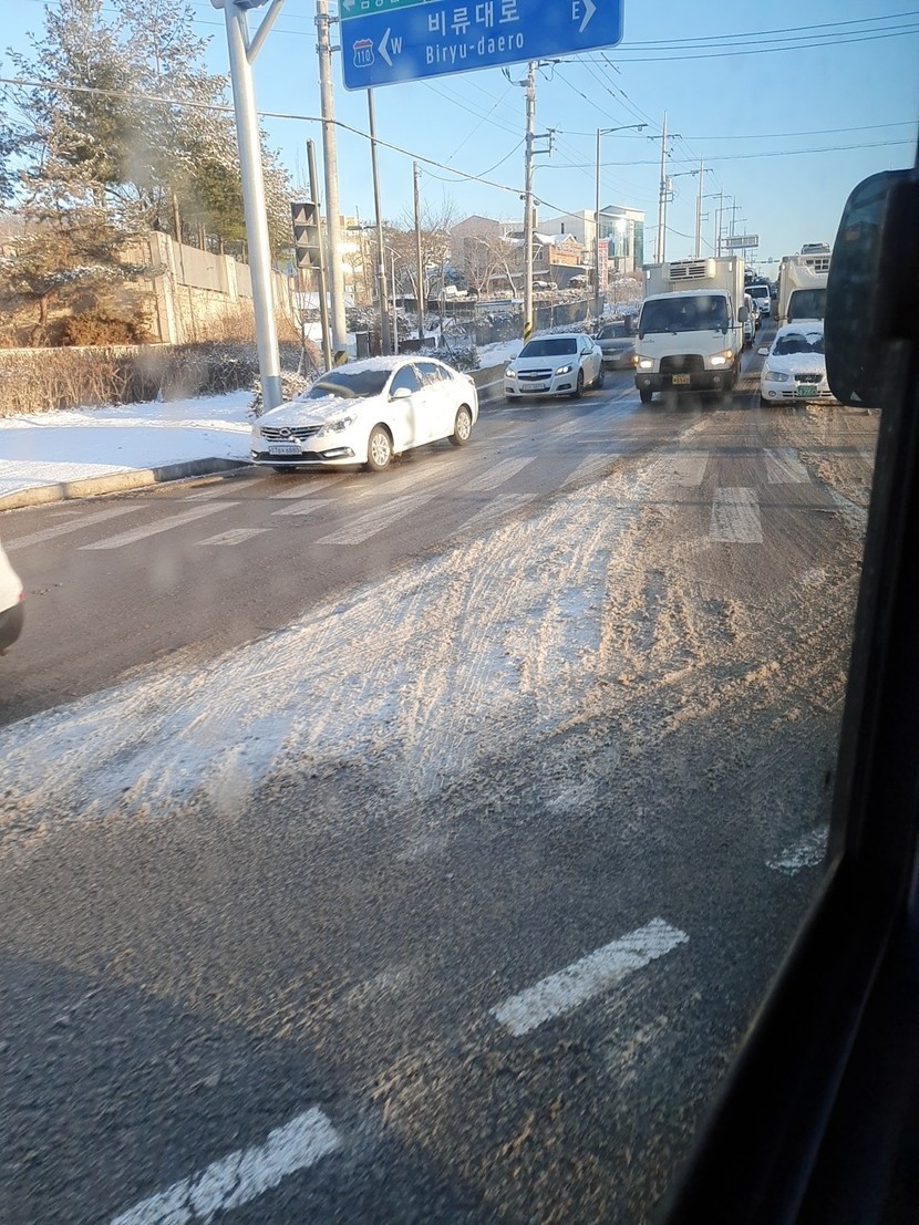 아침부터 도로에 눈이 많아요 안전운전하세요