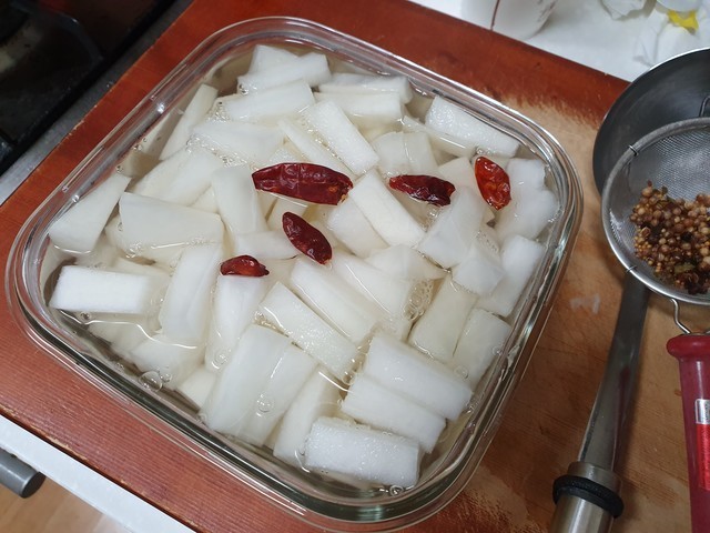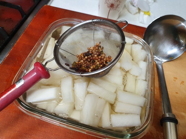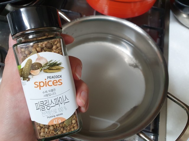 혹시 피클링 스파이스를 구하기 어려우신 분들은 통후추나 월계수 잎을 넣으면 될 것 같아요