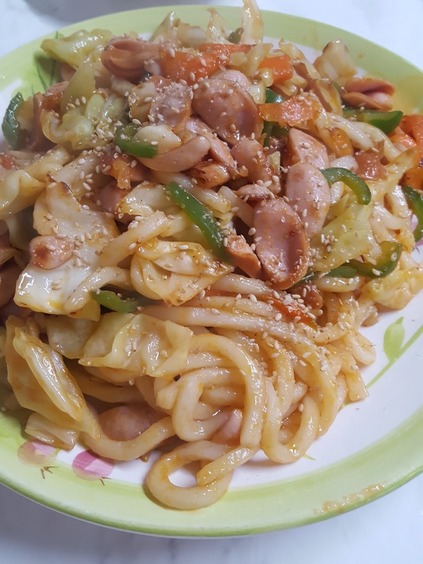 떡볶이, 우동볶음, 짜파게리, 기름떡볶이~~~♡♡ 맛있네 살찌는소리