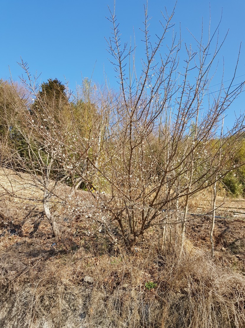 울 딸기랑 산책나갔다 언덕위에 핀 매화꽃한컷
