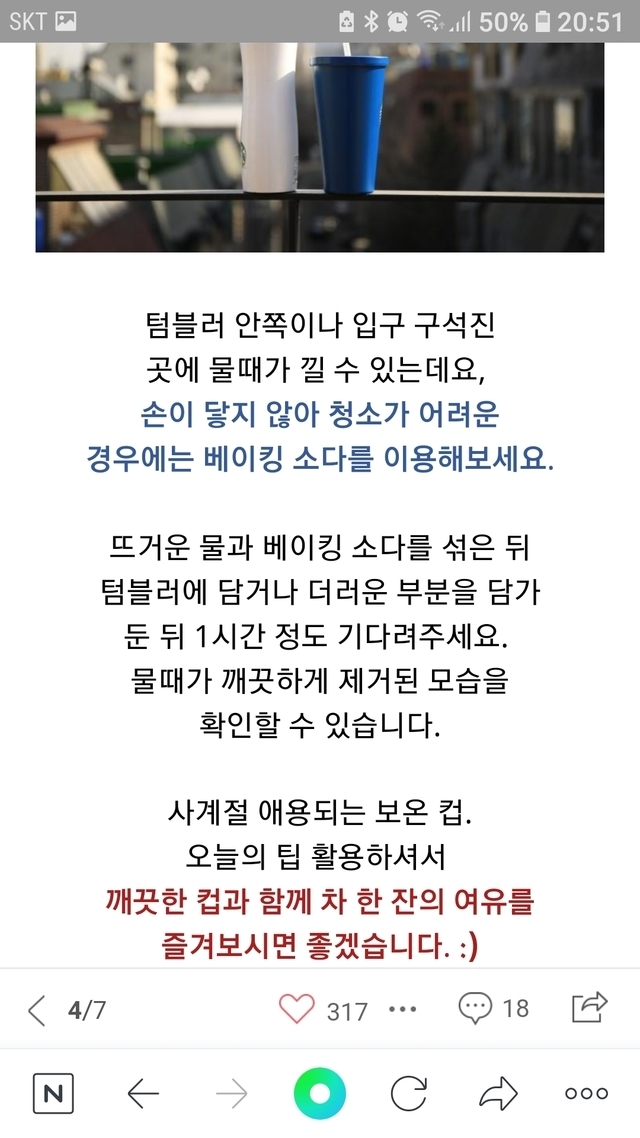 19.12.18 2,045 읽음 템블러~~~~~~~~~~~~관리방법 (세균을 먹을수없잖아요) csk3349 구독하기 39 49 콘텐츠의 수익 1,094 매일 먹는물~~~~~~~~~~~~~~~~~~템블러 관리가 중요합니다ᆢ세균덩어리를 먹을수 없잖아요오늘부터라도ᆢ템블러 관리하자구요♡♡ 49 0 / 300 입력
