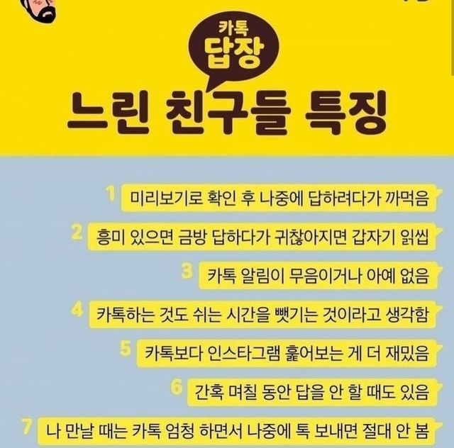 카톡 답장느린 사람들 특징