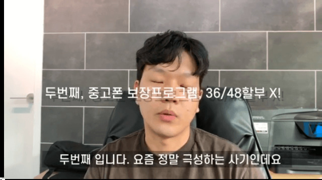 두 번째 중고폰 보장 프로그램, 36/48개월 할부 X 이는 요즘 정말 극성하는 사기로, 처음에 취지는 좋았지만 기기의 상태가 좋지 않다면 오히려 돈을 물어내야 하기 때문에 기기를 구입했다기보다 렌탈했다고 보는 것이 맞다고 설명하며 절대 하지 말라고 강조했다.