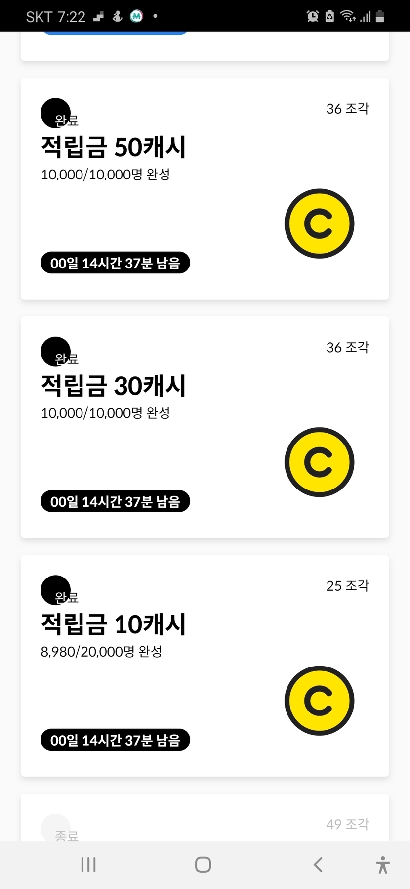 오늘의 퍼즐 성적 입니다