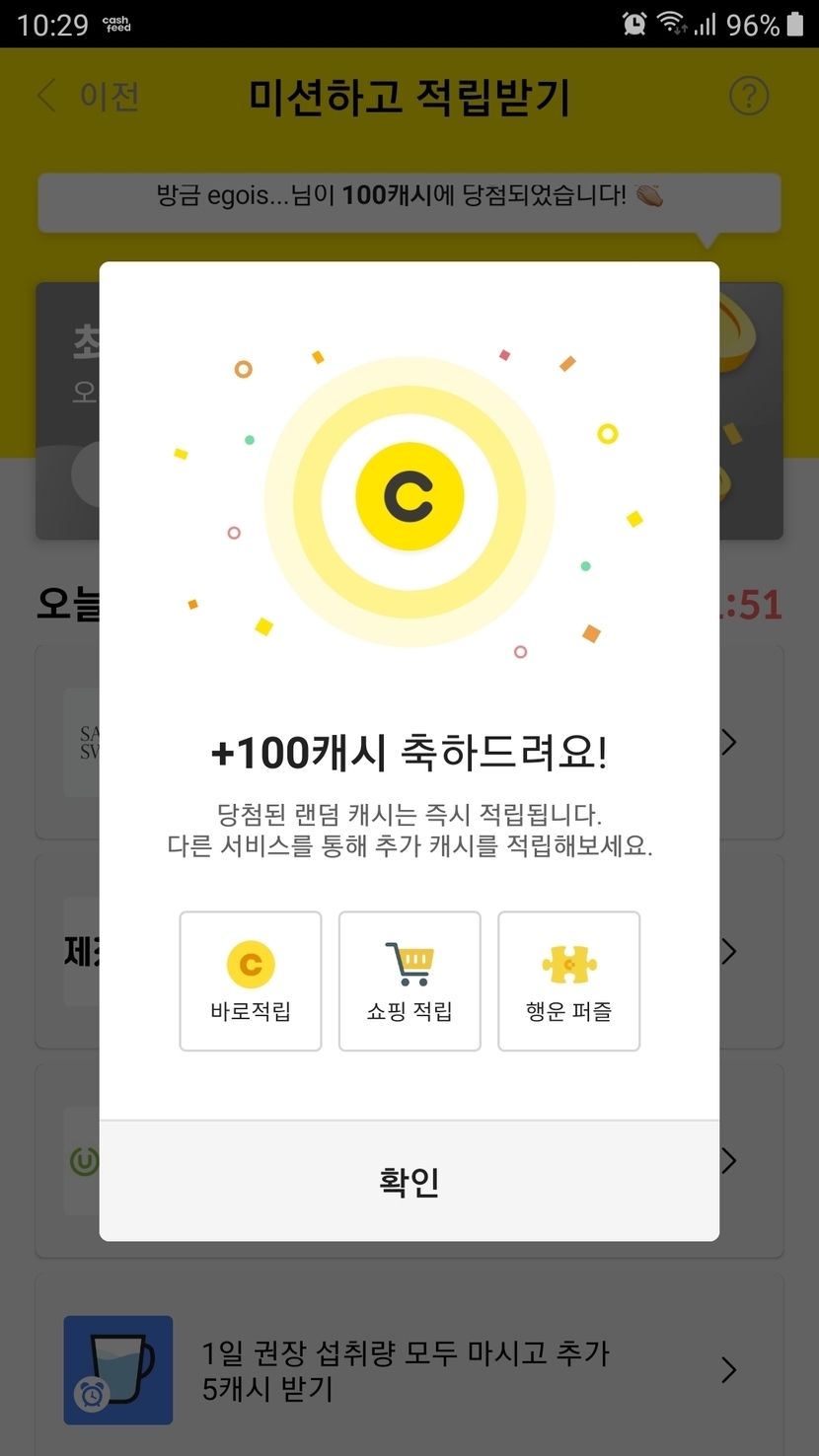 100캐시 받았어요