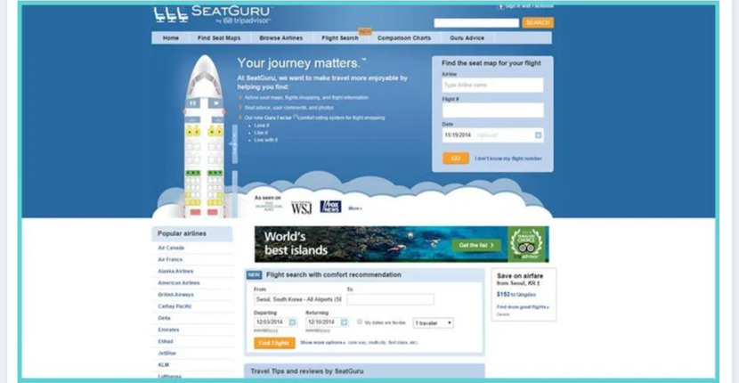 인터넷으로 미리 좌석 선점하실 때는 www.seatguru.com 를 참고하면 항공사별, 기종별로 좋은 좌석을 알려줘요!